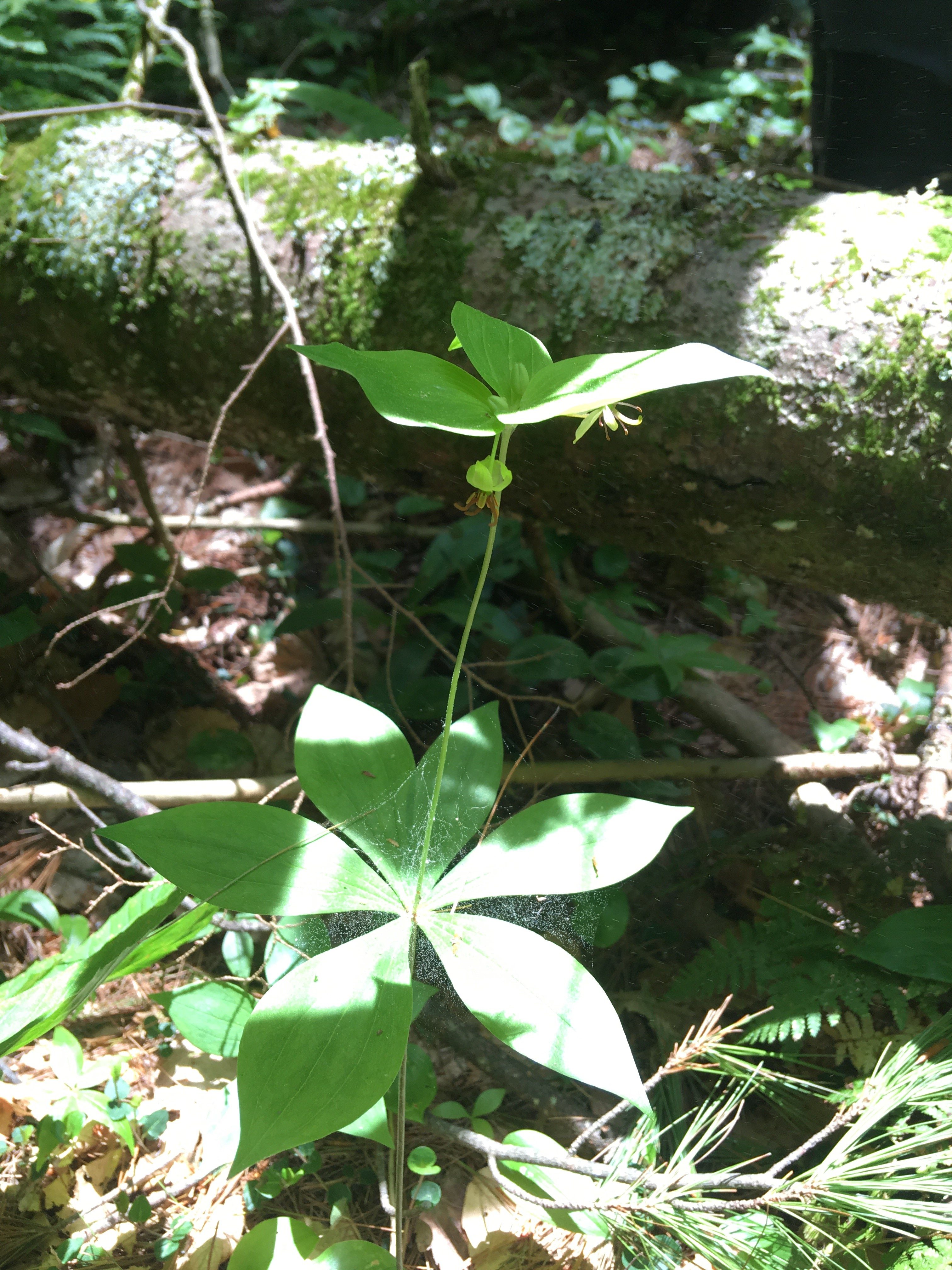 Plant of the Week! A small yet beautiful woodland perennial, Medeola virginiana, Cucumber-root, forces observers to pause and come down to its level in order to be fully appreciated. The plant is about a foot tall and consists of one or more whorls of leaves. The upper whorl is smaller and holds flowers just above or below the leaves. The flowers are tiny and nodding, and include greenish-yellow tepals and large, recurving brown/purple stigmata. Large purple berries replace the flowers and are eaten by birds and mice. The common name comes from its edible root, the smell and flavor of which resembles a cucumber. Harvesting the root is not reccommended, however, since this plant is endangered in some parts of the U.S.