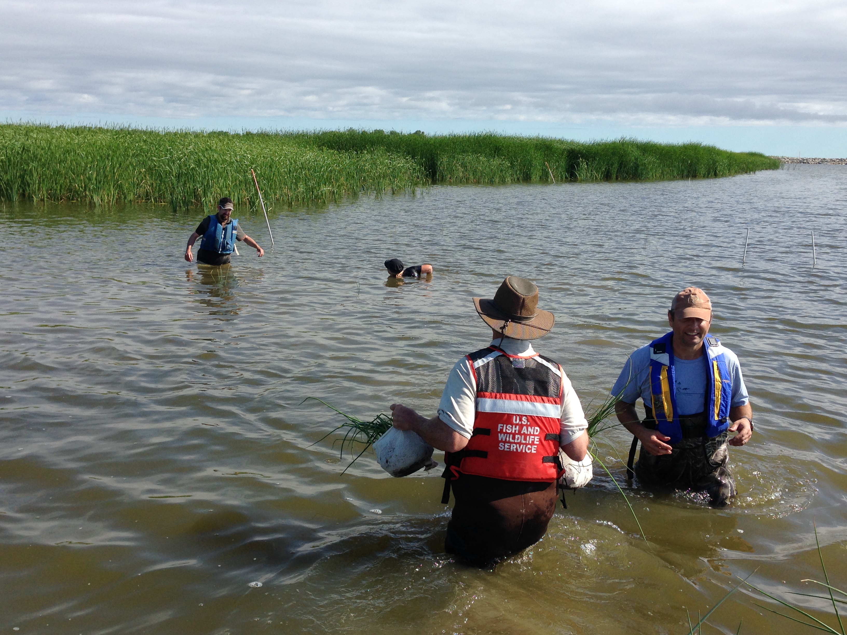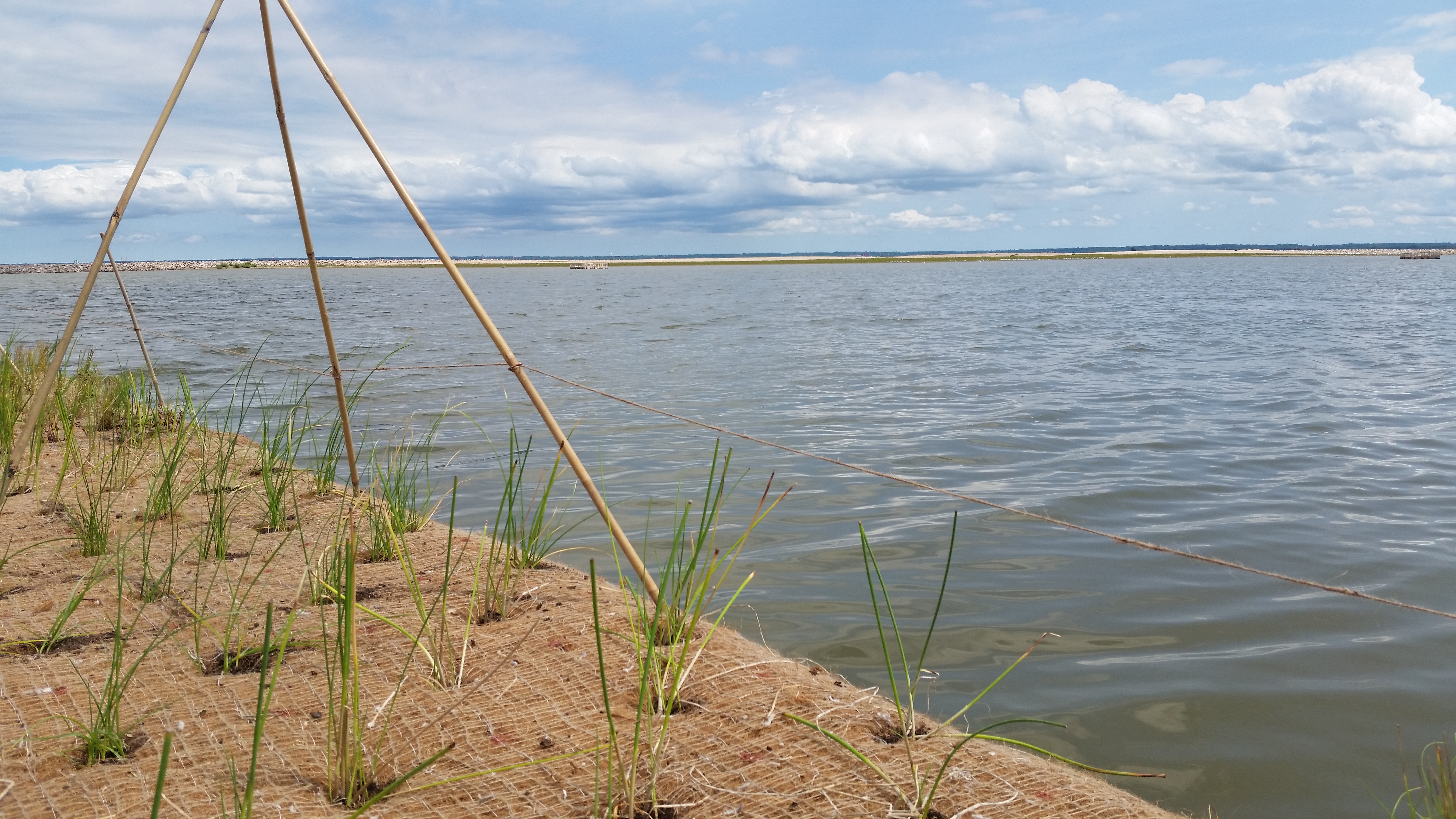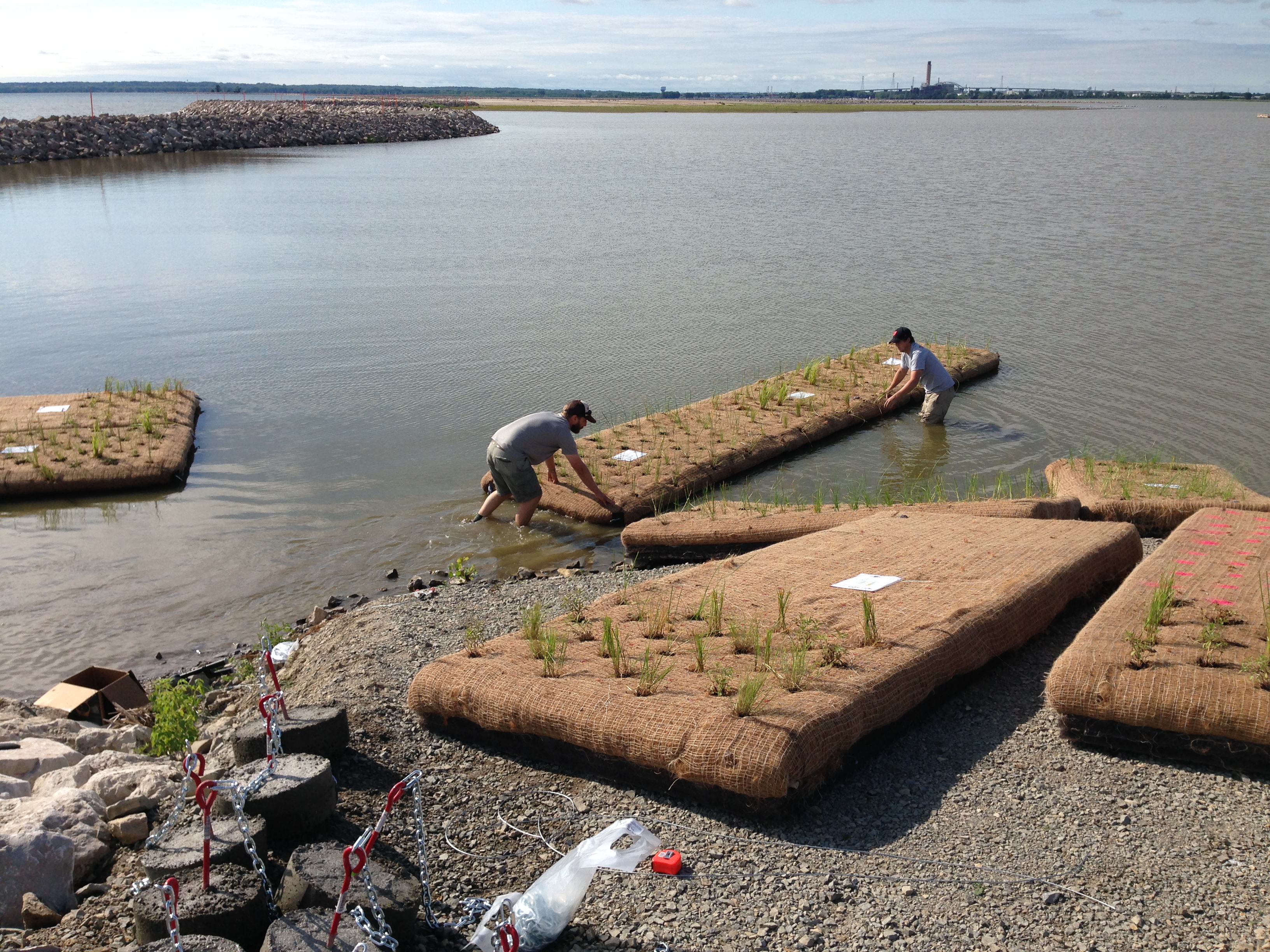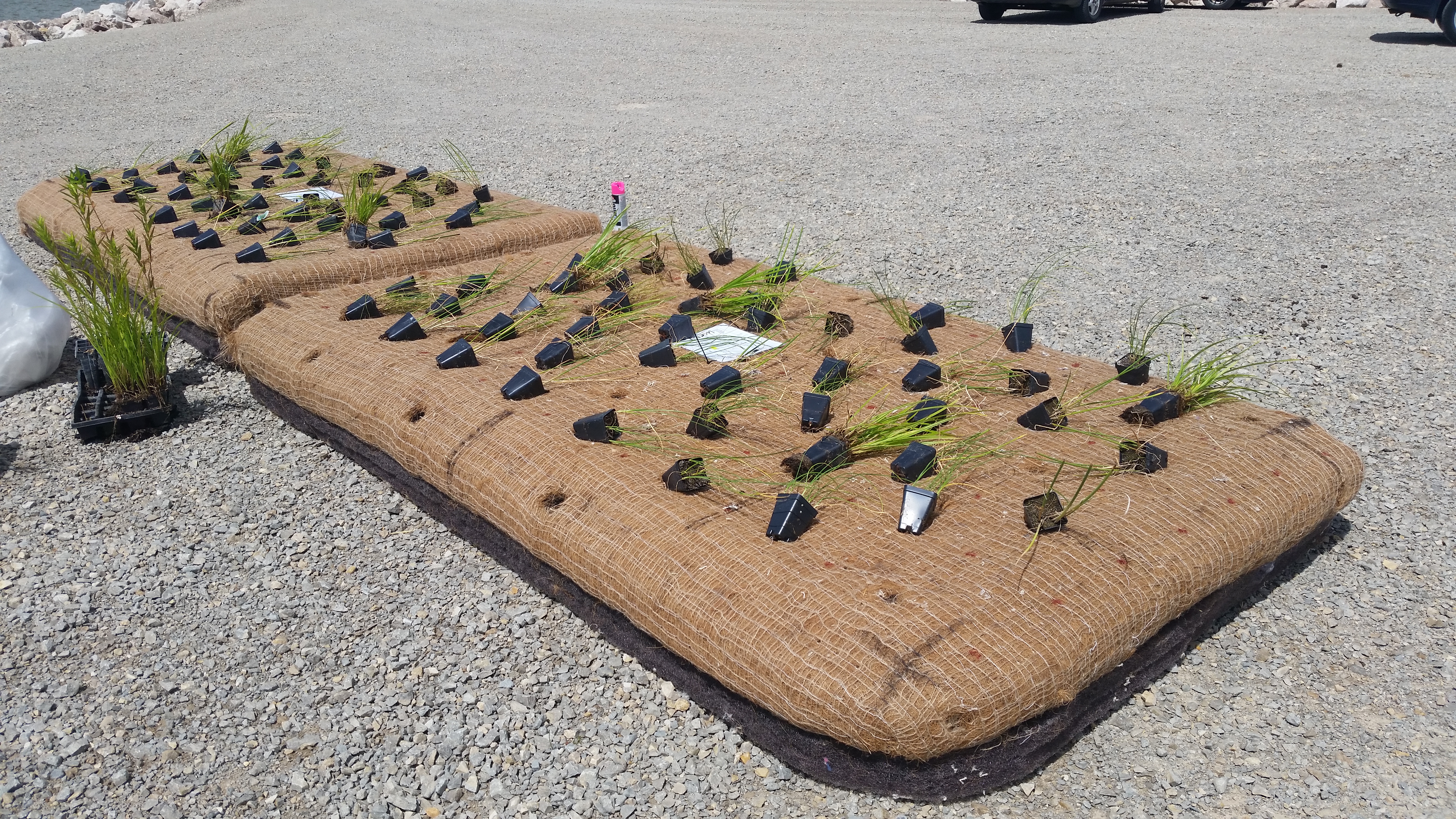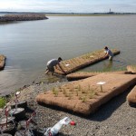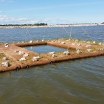 As part of the Cat Island Restoration project, Marek Landscaping LLC recently constructed a floating island for Forster’s Tern habitat. The 27 by 30 foot island will provide Tern habitat along Cat Island where it will help promote Tern nesting in the area. The island includes 640 square feet of habitat and contains a 10’x17’ rectangular hole in the middle, which will support floating reeds during future installations. The island is planted with native wet prairie and sedge meadow plugs which among others include Hardstem Bulrush and Chairmaker’s Rush. In addition to the plugs, the island was seeded with a native wet-prairie seed mix distributed over the planting area.